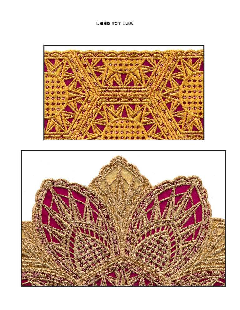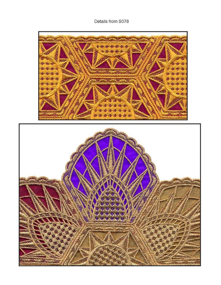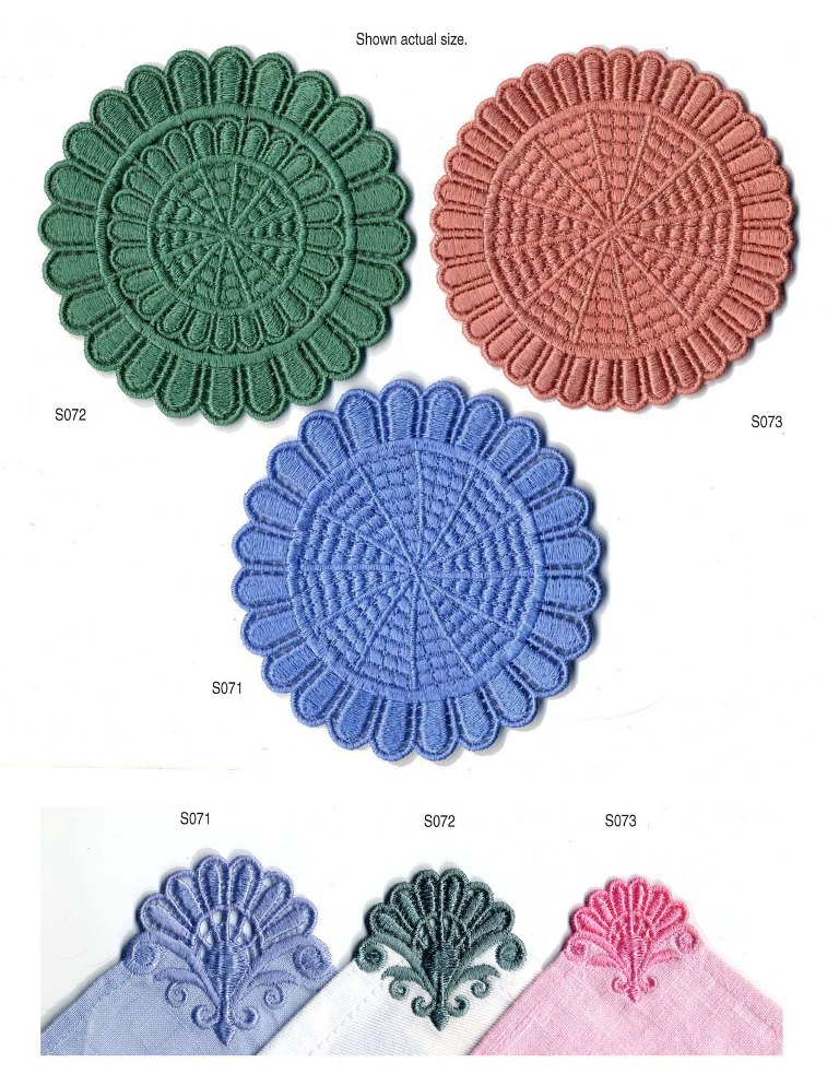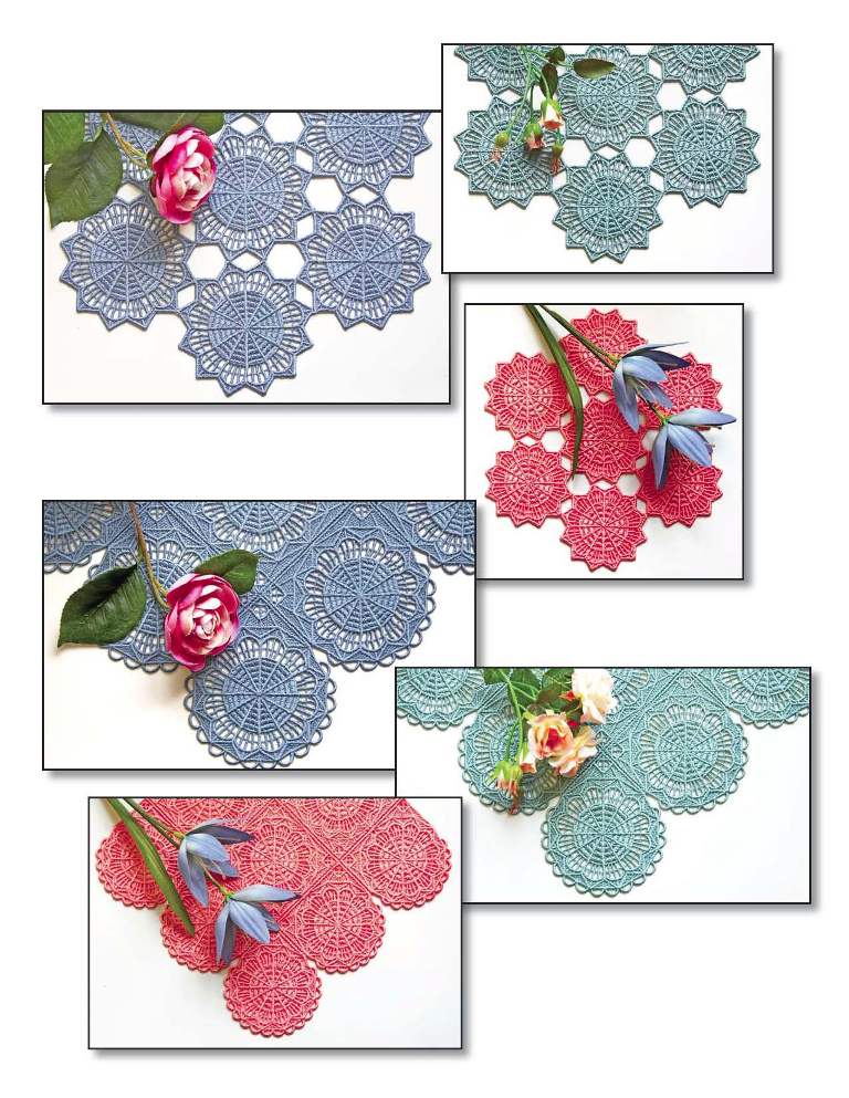 Motifs for lace fabric shapes, doilies, table runners, etc. Fits