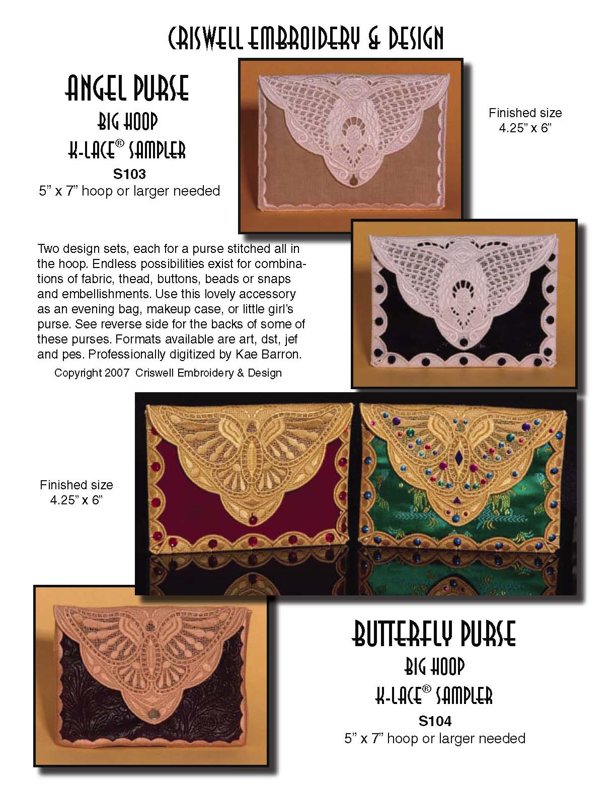 E018 Butterfly Purse for Big Hoops All-in-the-hoop construction. 5 x 7 hoop or larger needed. No