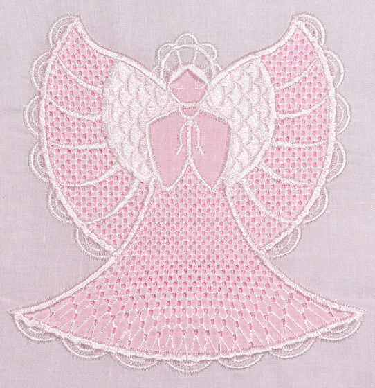 Freestanding ornament, wing-needle shadow applique