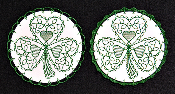 S057 Coasters with K-Lace Sampler Five round coasters with kaleidoscope motifs and lace edgings