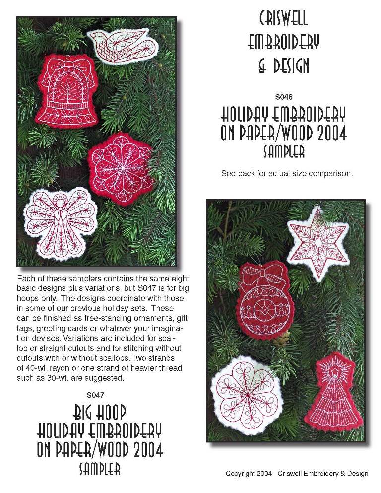 E319 Holiday Embroidery on Paper or Wood for Big Hoops 8 designs for stitching on paper or wood with no cutting