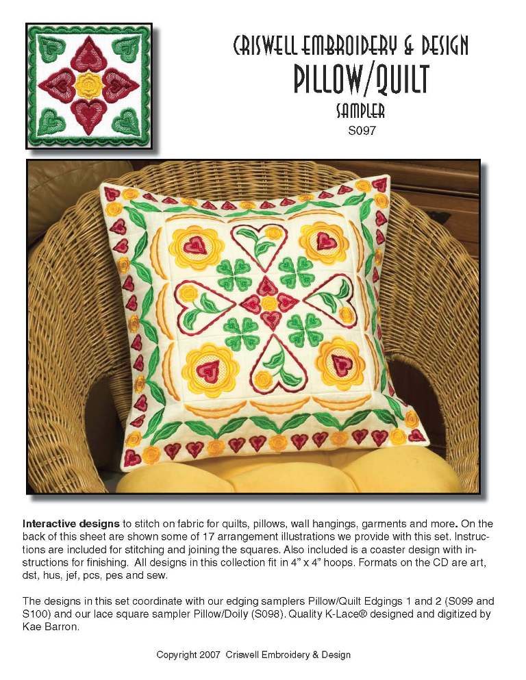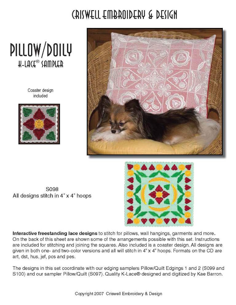 E345 Pillow/Doily K-Lace Sampler Interacting lace designs to use for pillows and doilies.